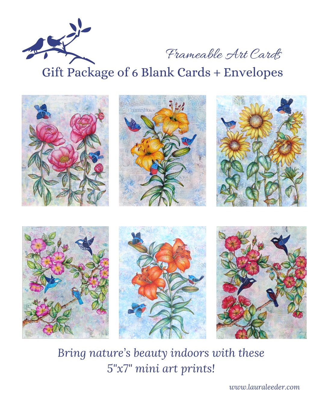 Original paintings, frameable art cards, and seasonal creations inspired by birds, blooms, and the beauty of nature.